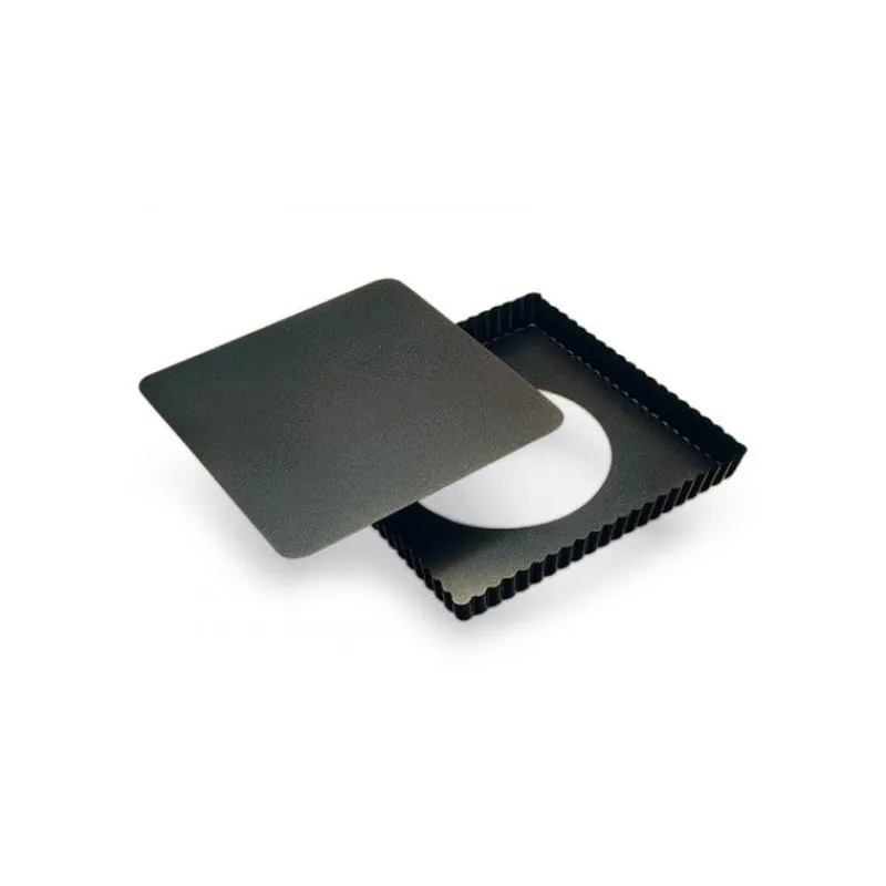 Moule à tarte carré avec bord cannelé et fond mobile avec revêtement anti adhérent.