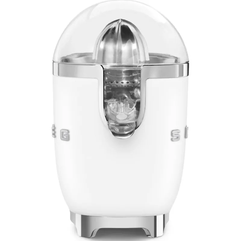 SMEG élargit sa gamme de couleurs avec une nouvelle et élégante finition mate. Une couleur classique dans une texture soft touch moderne, avec un effet opaque, résistant aux rayures et anti-traces de doigts pour un aspect toujours propre. Ce presse-agrumes deviendra vite un incontournable de vos plans de travail.