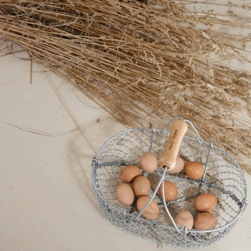 Que ce soit pour le marché, le potager ou encore le poulailler, pour stocker vos produits frais dans la cuisine ou le cellier, ce panier en fil de fer galvanisé permet un transport facile de vos provisions et une bonne prise en main.