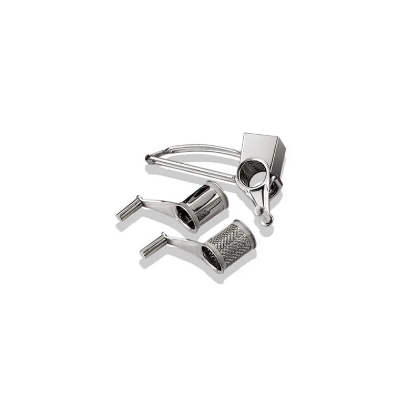 Râpez finement, plus grossièrement ou en lamelles vos fromages et crudités avec ce moulin tout inox muni de 3 tambours: