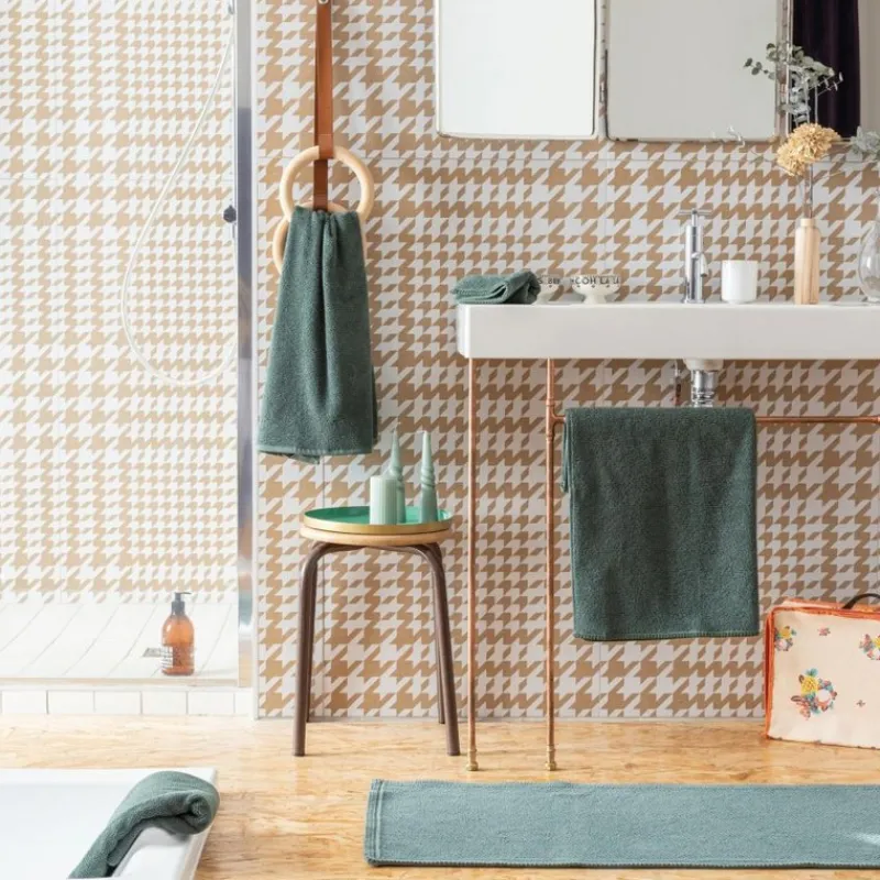 Apporter une touche de verdure à votre décoration de salle de bain, grâce au linge de toilette Bora Fougère de Vivaraise.
