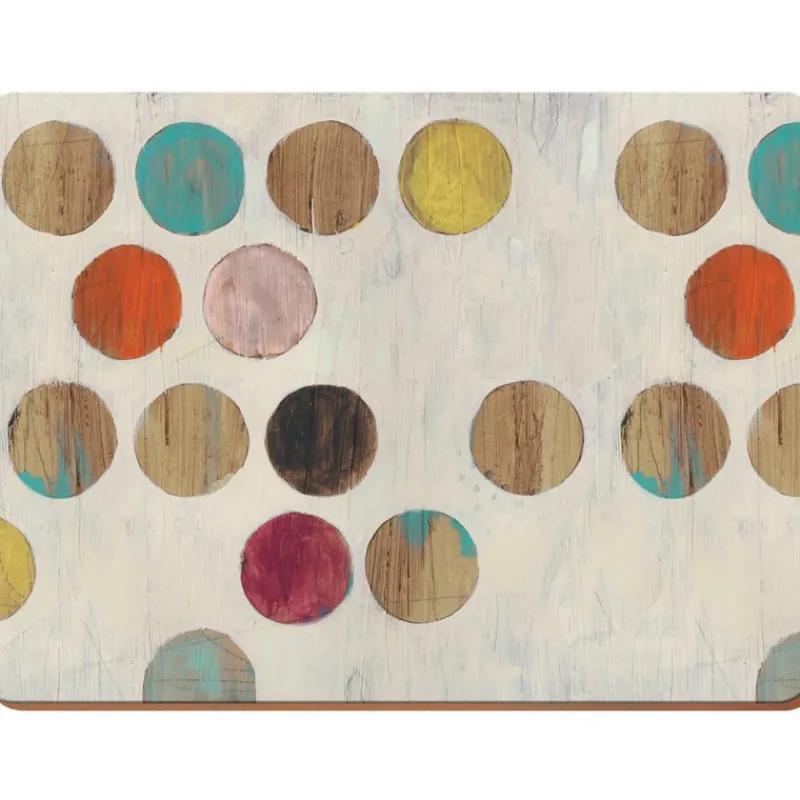 Le set de table Rétro Spot de Creative Tops est en liège de très belle qualité. Comme imprimés sur un support façon bois, des gros ronds de multiples couleurs laissent entrevoir les veines du bois en transparence. Ils vous invitent à un repas coloré tout en légèreté…un peu vintage mais tellement actuel.