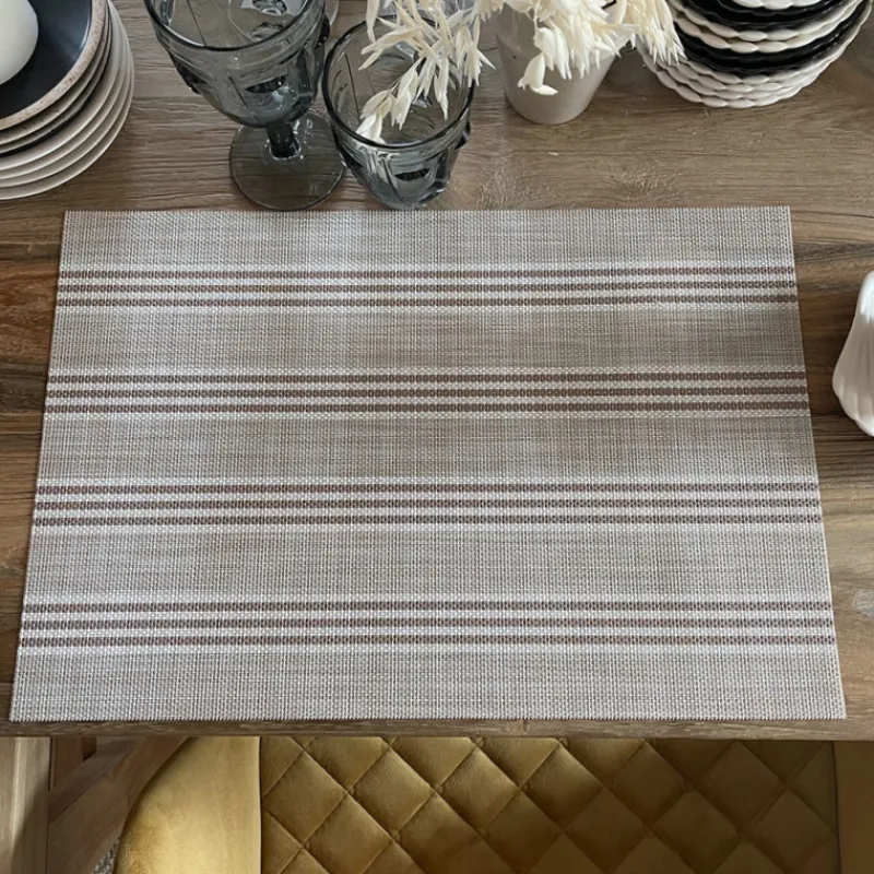 La marque Opjet vus présente le set de table rayures. Un modèle en PVC auquel les rayures apportent un aspect intemporel et élégant.