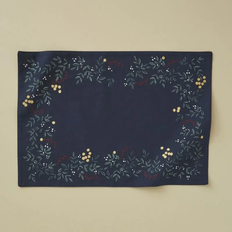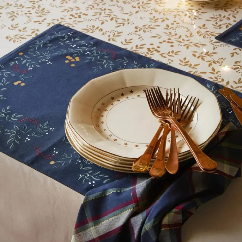 Le set de table Lueur d’Hiver Bleu Ardoise est en coton, décoré d’un motif végétal traditionnel pour les fêtes de fin d’année. Quelques points dorés viennent agrémenter cette jolie pièce pour une ambiance festive assurée.