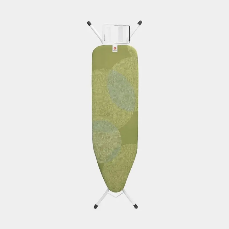 Quel que soit le type de fer que vous utilisez, la table à repasser Calm Rustle de Brabantia conviendra parfaitement grâce à son support métallique.