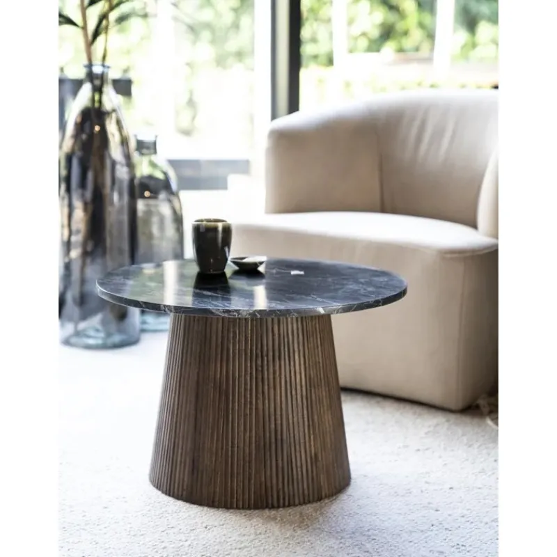 La table basse ronde Maxim en marbre et en bois de Eleonora BV de dimensions 60 x 60 x 40 cm sera idéale à côté de votre canapé.