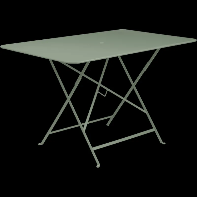 Table pliante rectangulaire de jardin en acier avec trou de parasol déclinée dans différents tons pour colorer votre terrasse ou votre intérieur.