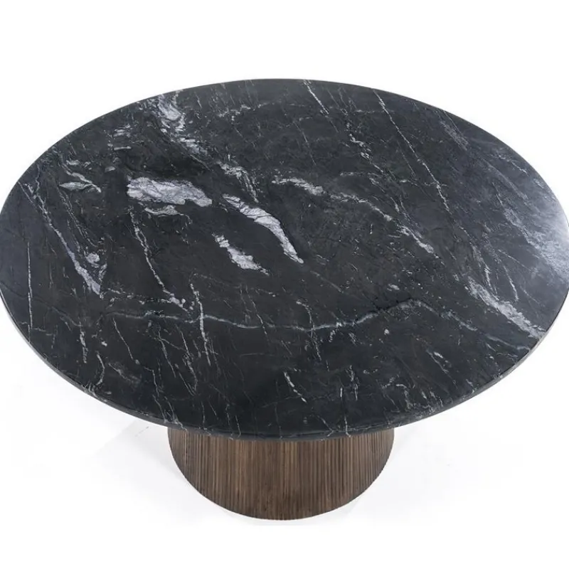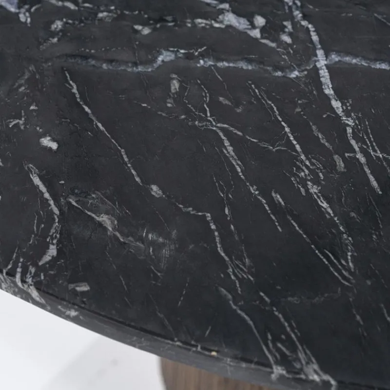 Le plateau rond en marbre noir permet d’avoir une table élégante, que vous pourrez parfaitement utiliser tous les jours, pour vos repas du quotidien. L’élégance de cette table vient en effet du plateau en marbre, mais également du pied élaboré en bois de manguier, qui est connu pour être un bois exotique, dur et résistant.