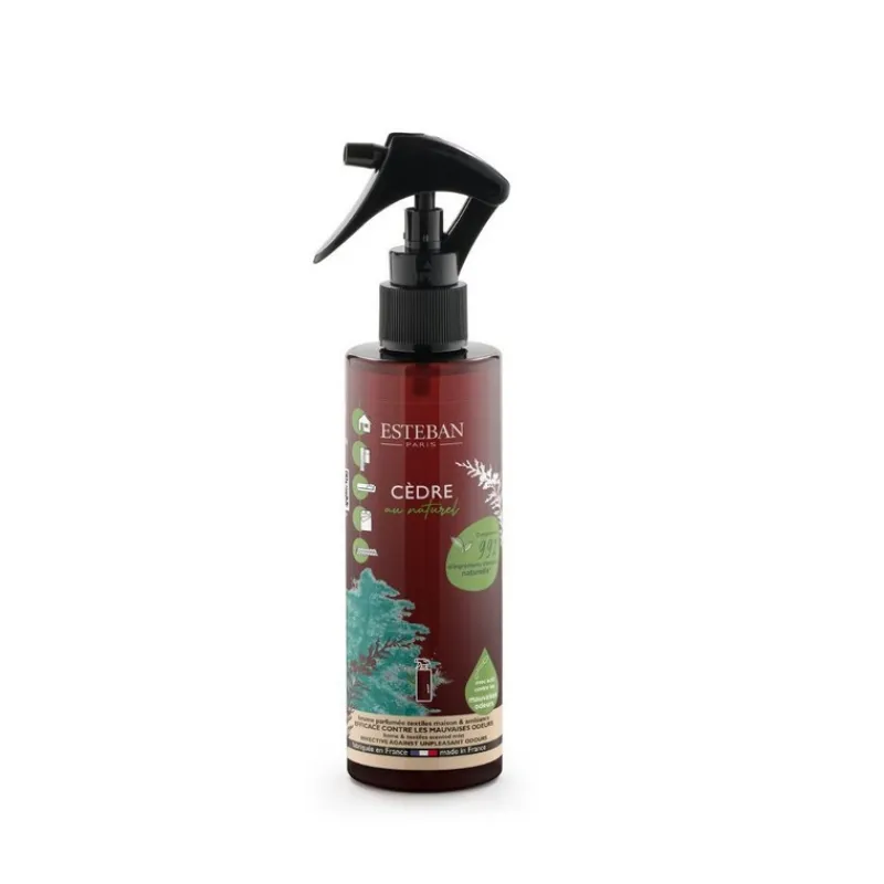 Estéban Paris a conçu une gamme de produits parfumés malins pour le soin de la maison, pour faire de chaque geste quotidien un plaisir au naturel. Découvrez ici la brume anti-odeurs Cèdre au Naturel. Cette brume parfumée a été développée spécialement pour les textiles. Un pschitt pour parfumer les textiles et réduire efficacement les mauvaises odeurs grâce à un actif breveté.