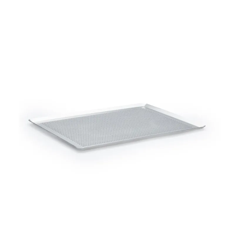 Cette plaque rectangulaire micro-perforée, à bords pincés, réalisée en Inox est idéale pour cuire de petites pâtisseries ou de petits aliments, pour la cuisson des tourtes, galettes, tartes quiches, viennoiseries… À la fois légère, épaisse, résistante et indéformable, elle vous accompagnera dans de nombreuses préparations. Conçue spécifiquement pour favoriser la circulation de l’air chaud avec sa surface microperforée, cette plaque de cuisson en inox est parfaite pour la cuisson sur tapis, feuille de cuisson, et elle sera également des plus utiles pour supporter les moules en silicone. Elle est plate et à bords pincés, pour que vous puissiez installer bien à plat vos tapis et feuilles de cuisson, les micro-perforations de Ø 3mm sont disposées sur la plaque de façon optimale permettant ainsi une cuisson homogène et des fonds bien croustillants grâce à une excellente circulation de l’air.