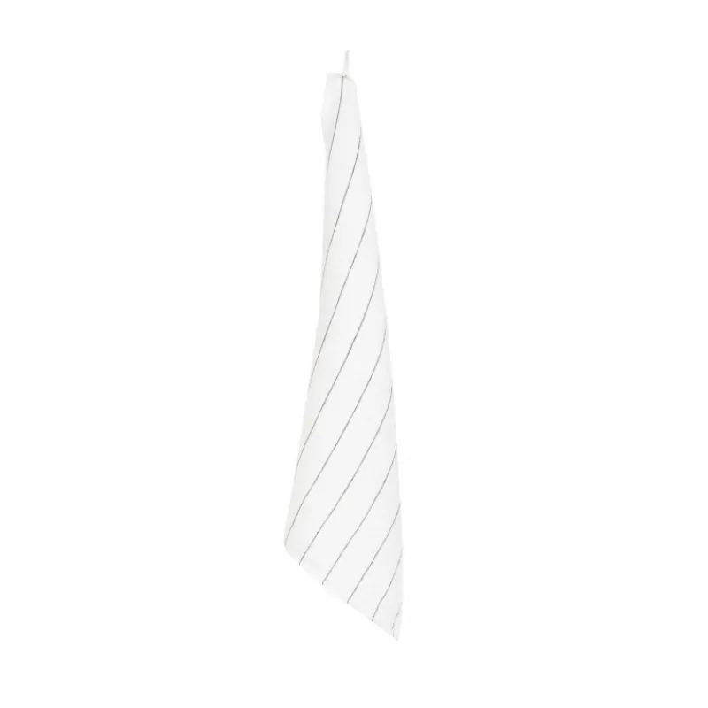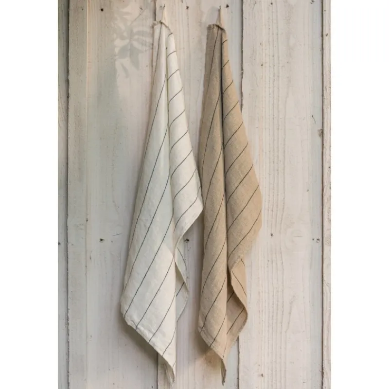 Orné de fines rayures, le torchon Calvi en lin dont la fibre ultra absorbante sèche parfaitement vaisselle et verres sans laisser de traces.