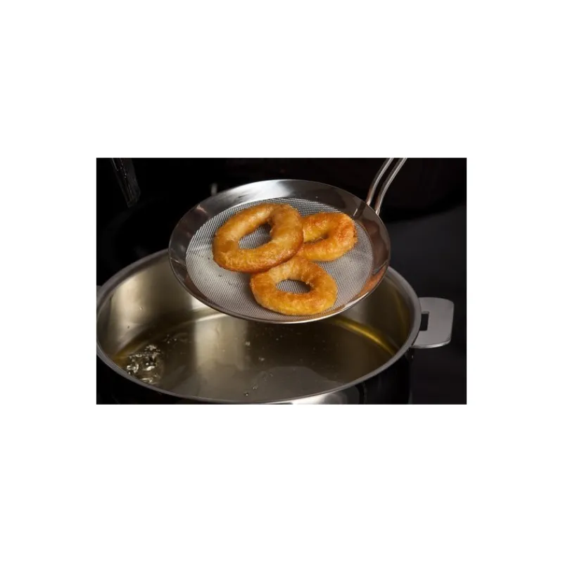 - Matériaux : Tamis fin cerclé inox brillant et manche inox brossé