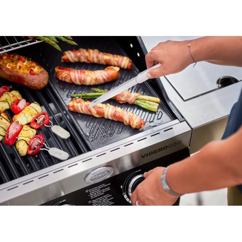 Les dentes fines et longues terminées par de petites rainures agrippent les aliments même fins comme les tranches de bacon, aubergines… pour les retourner, les plonger dans l’huile ou bien les sortir d’un récipient étroit. Peut aussi servir de pince à cornichons.