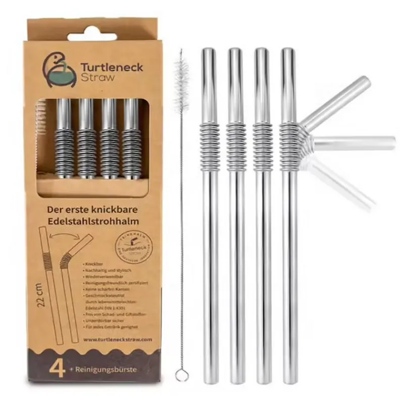 Découvrez Turtleneck® Straw, l’alternative durable aux pailles en plastique. Avec cette innovation allemande, vous optez pour des pailles en acier inoxydable et surtout pliables !