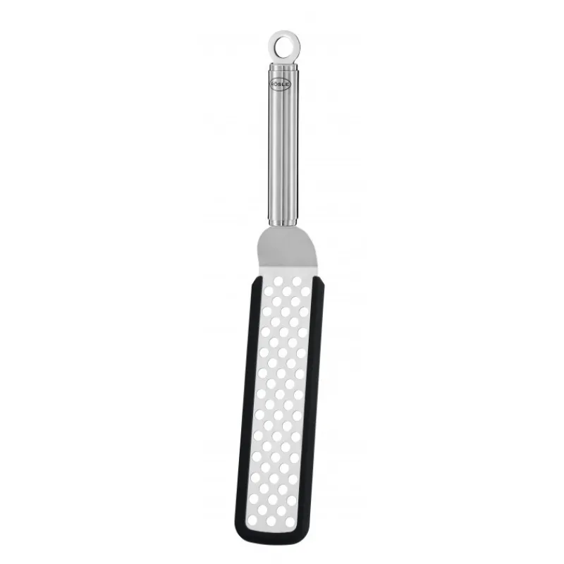 La longue spatule coudée perforée avec embout silicone de Rösle est idéale pour tourner et prélever les aliments de vos poêles, casseroles, moules et plaques de cuisson.