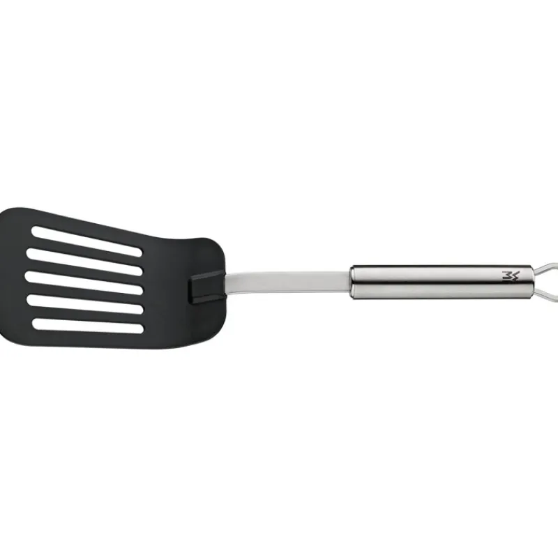 La spatule WMF Profi Plus est le choix idéal pour déplacer ou retourner avec précaution les aliments délicats dans la poêle, tels que les filets de poisson fins, les légumes tendres, les tartes flambées très fines et même les simples œufs au plat.
