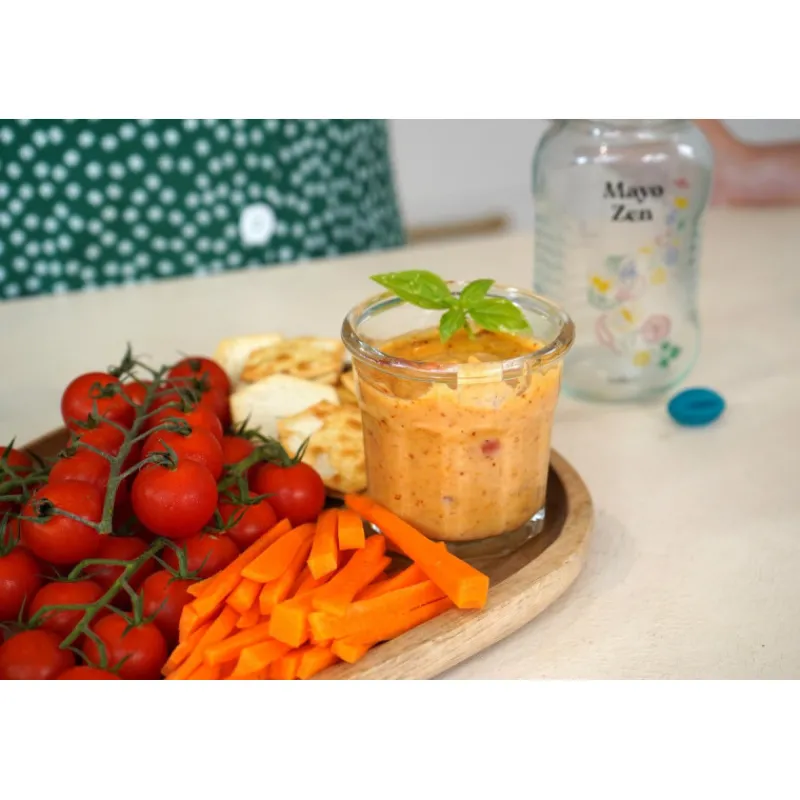 Plus besoin de robot pour faire une délicieuse mayonnaise maison. Avec Mayozen de Cookut, préparez une délicieuse mayonnaise maison en quelques minutes et à la main. Un pot en verre gradué et une bille en silicone : c’est tout ! Et peu importe la température des ingrédients : jaune d’oeuf, jus de citron, sel poivre vinaigre … mettez-y ce que vous voulez !