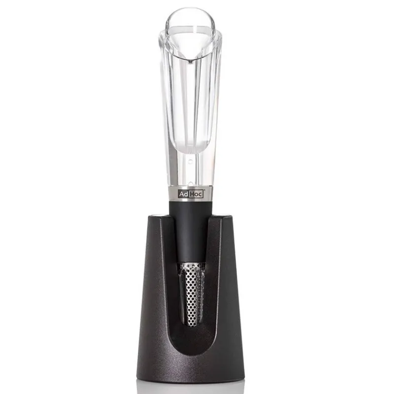 Le temps nous manque parfois pour aérer correctement une bouteille de vin que l’on souhaite déguster lors d’un bon repas? Visite impromptue d’amis ou envie soudaine d’une bouteille en particulier ? N’hésitez plus à l’ouvrir faute de pouvoir l’aérer correctement grâce au bec verseur et décanteur Aerovin de la marque AdHoc.