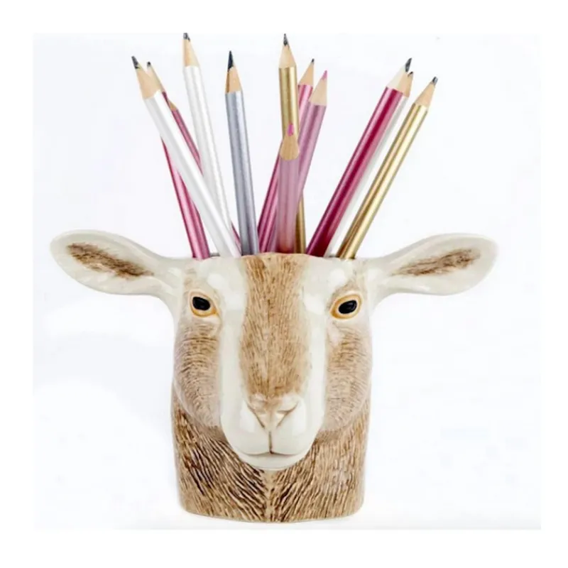 Le pot à crayon Chèvre en céramique de Quail Ceramics UK s’accordera parfaitement avec les affaires de votre bureau.
