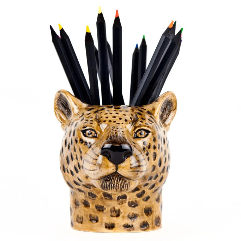 Personnalisez votre bureau avec le pot à crayon Léopard de Quail Ceramics UK.