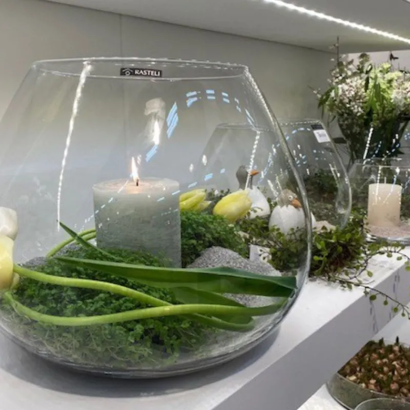 Posé sur un bahut, un meuble bas ou disposé au centre de votre table, le vase en verre Convexa de Rasteli diffusera élégamment la lumière, pour une touche chaleureuse et déco.