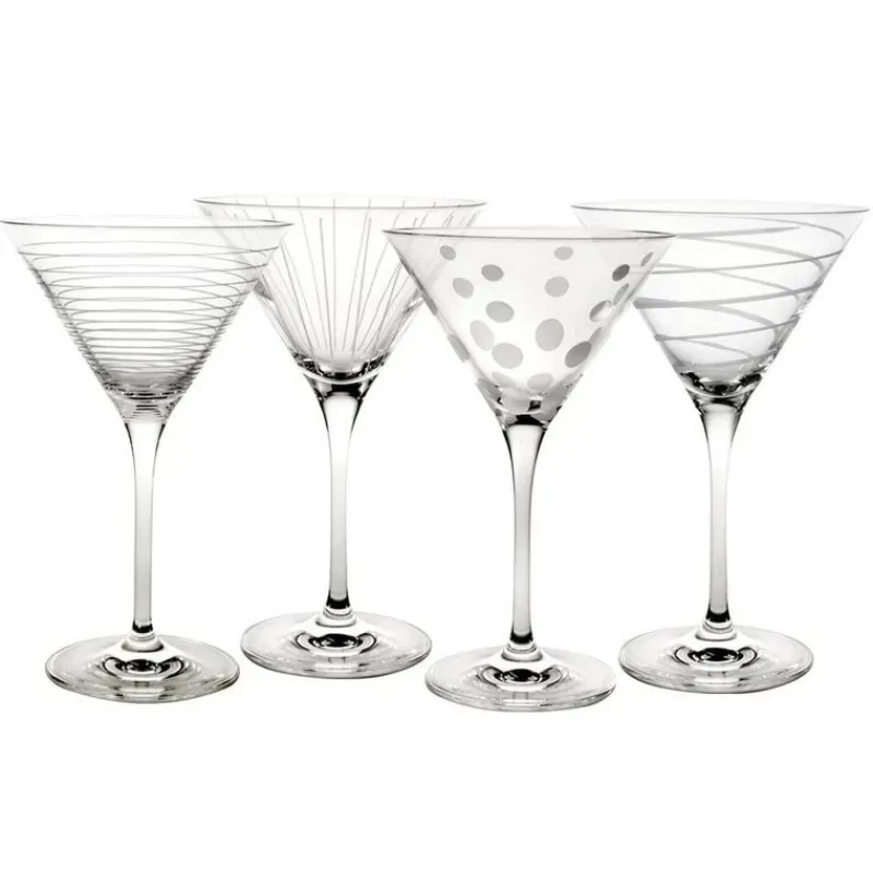 Avec leurs motifs insolites de pois, de lignes et de tourbillons, ces coupes à cocktail Cheers de Mikasa sont élégantes et originales.