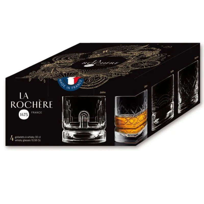 Véritable coup de cœur pour ce coffret de verres à whisky Dandy ! Fabriqué en France par la marque emblématique de verrerie La Rochère, ce coffret dévoile quatre verres aux motifs symboliques créant ainsi différents effets de lumière.