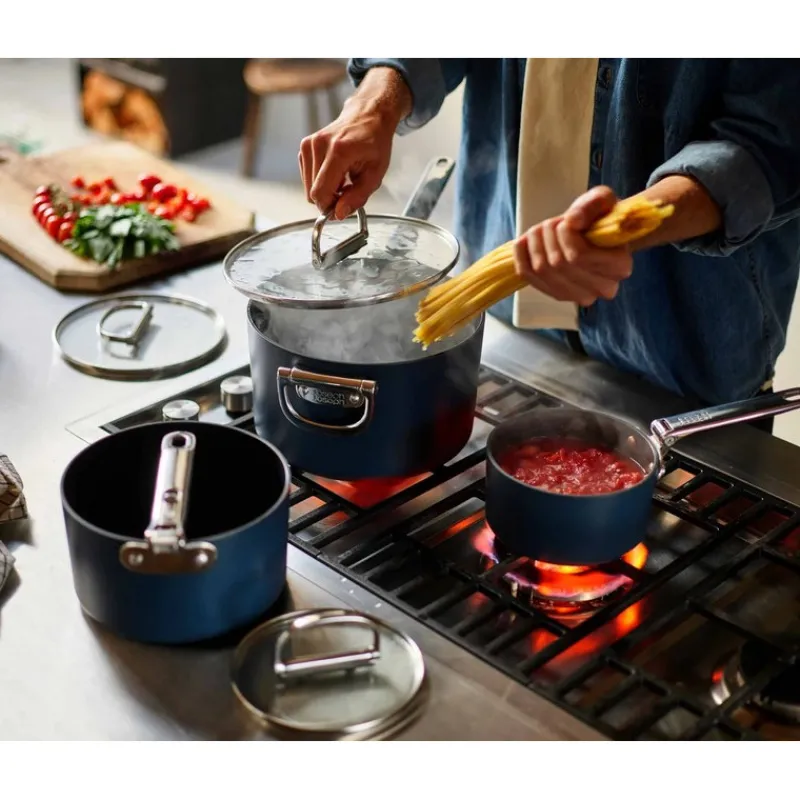 Comme le dit tout haut, Joseph Joseph : Toutes les casseroles ne se valent pas. La marque présente donc Space, sa gamme révolutionnaire d’ustensiles de cuisine de qualité professionnelle, en bleu nuit. Joseph Joseph a développé un set de 3 casseroles dont les atouts sont :