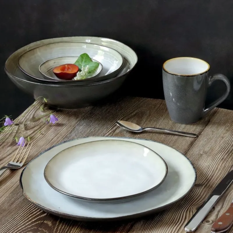 Sublimée par un gris anthracite à l’extérieur, les nuances de nacre créées lors de la cuisson de l’émail subliment toutes vos préparations. Du petit-déjeuner au dîner, le bol Shadow Aqua est une pièce indispensable de votre univers. Il sera tout aussi idéal en cuisine pour séparer des ingrédients ou pour présenter des apéritifs.
