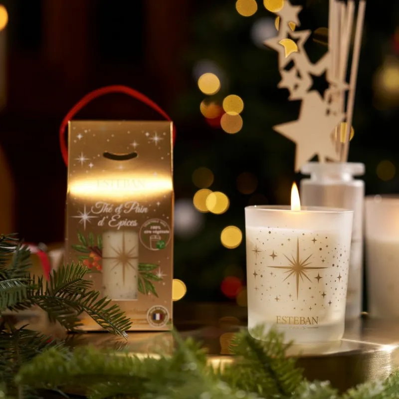 Ajoutez à la magie de Noël en diffusant subtilement un parfum aux senteurs épicées et gourmandes grâce à la bougie Thé et Pain d’épices de la maison Estéban Paris.