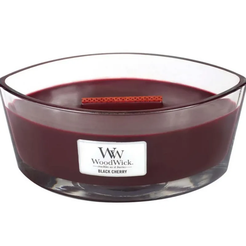 Cette bougie parfumée Ellipse Black Cherry de Woodwick apportera une délicieuse senteur gourmande à votre pièce.
