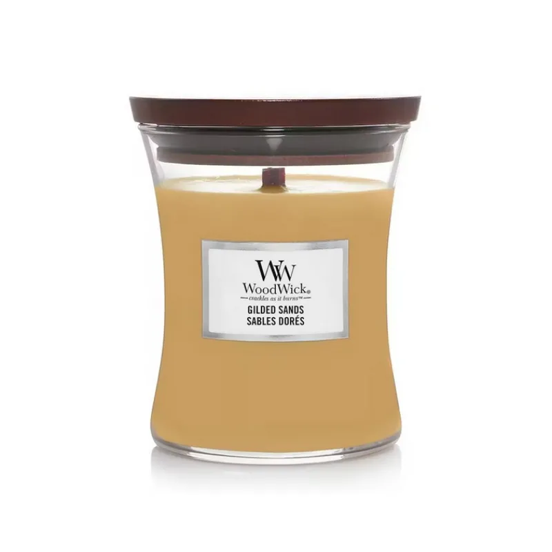 La bougie parfumée Sables Dorés de Woodwick vous transportera à travers un parfum surprenant !