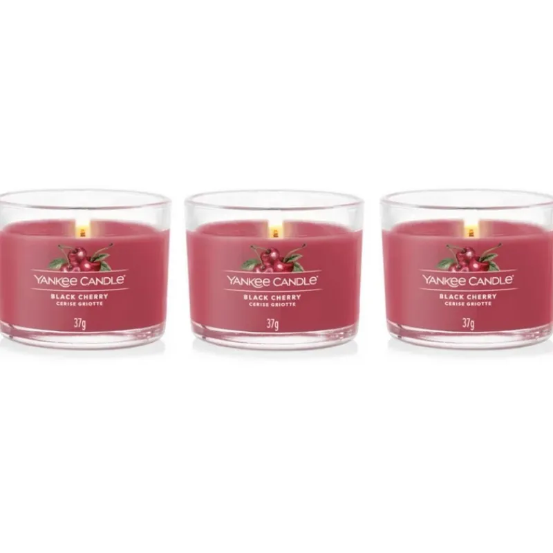 Ces 3 Bougies Votives Parfumées Cerise Griotte de Yankee Candle ont un parfum particulièrement fruité, qui embaumera toute la pièce !