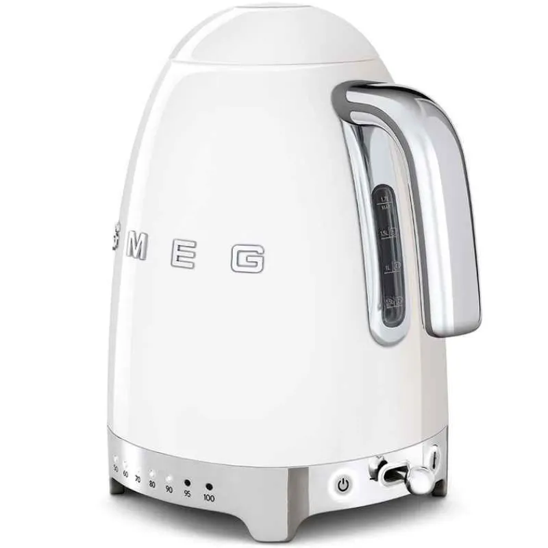 Un style tout en rondeur et une finition brillante, la bouilloire réglable de SMEG affiche fièrement son look années 50, tout en blanc!