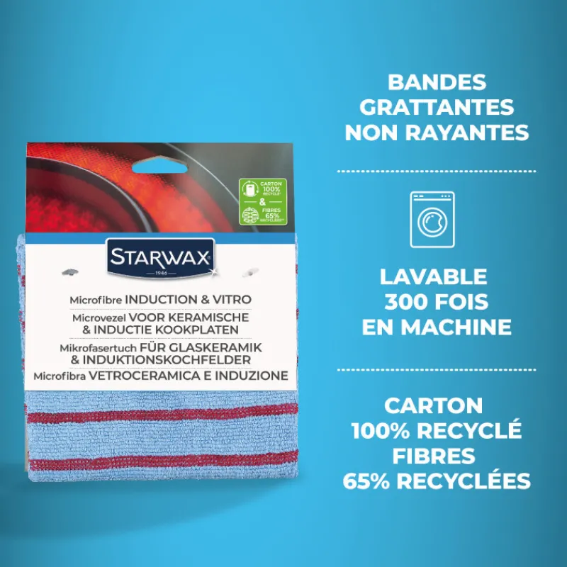 Les plaques de cuisson de type induction ou vitrocéramique sans des surfaces qui demandent un nettoyage doux car elles sont sensibles aux rayures. Starwax vous propose donc une microfibre spécialement conçue pour ces surfaces dites fragiles.