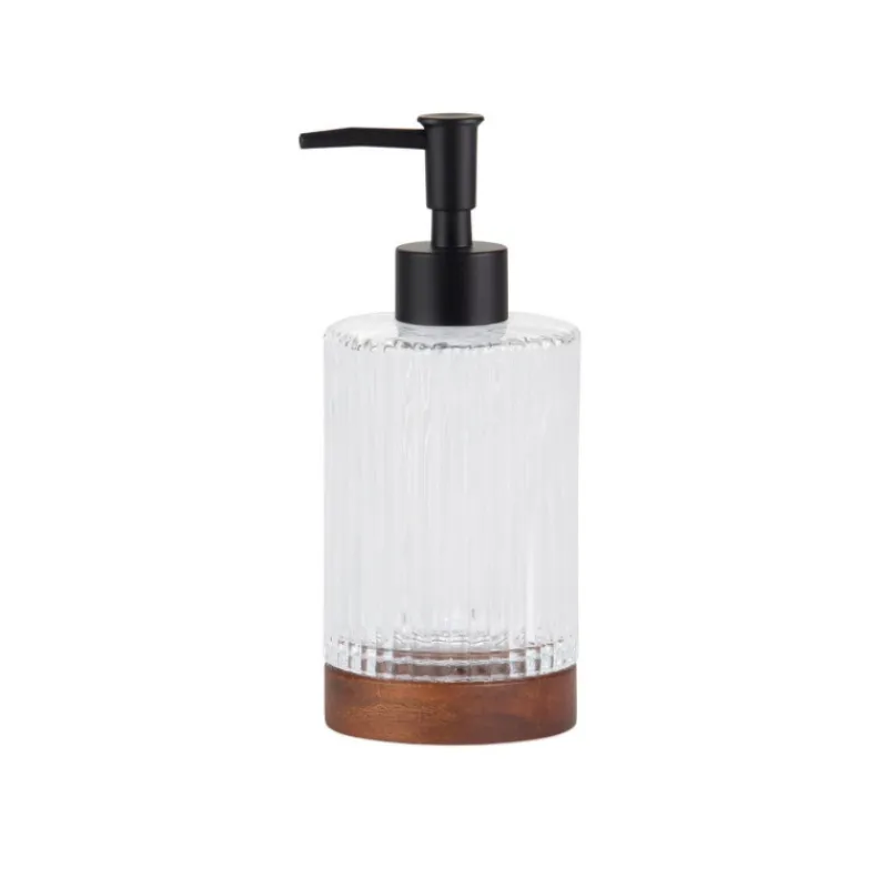 Cette Pompe à Savon en Verre et Acacia de Andrea House pourra parfaitement s’intégrer à n’importe quelle décoration de salle de bain.