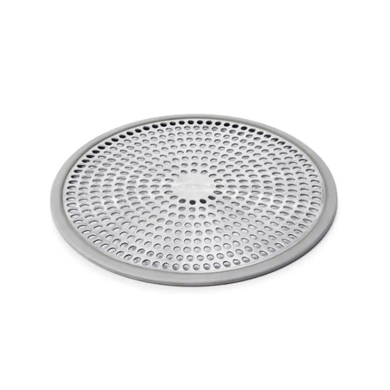 La bonde de douche en inox de la marque Oxo retient efficacement cheveux et poils pour des canalisations plus propres .