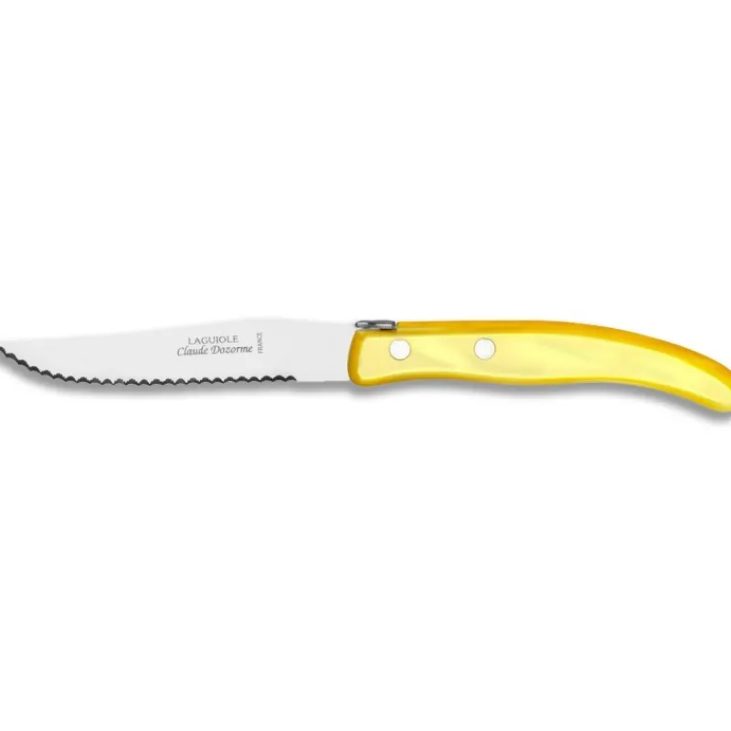 Claude Dozorme a imaginé pour la table un couteau esthétique et efficace, le couteau Berlingot Jaune. Tout d’abord, les Berlingot sont conçus pour répondre à une infinité de besoins. Ainsi, vous pouvez couper de la viande, des fruits, du fromage, une pizza, du saucisson ou du pain, éplucher des légumes, servir une bonne part de tarte…