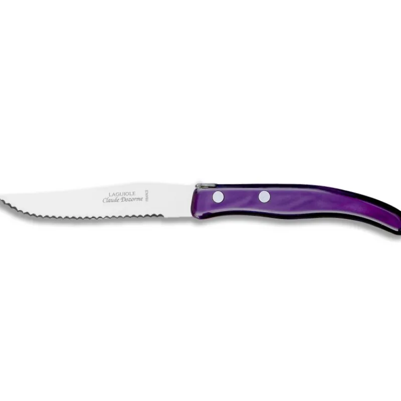Avec son manche violet en nacrine, le couteau à steak Berlingot est un incontournable de votre table. Par la coutellerie française Claude Dozorme.