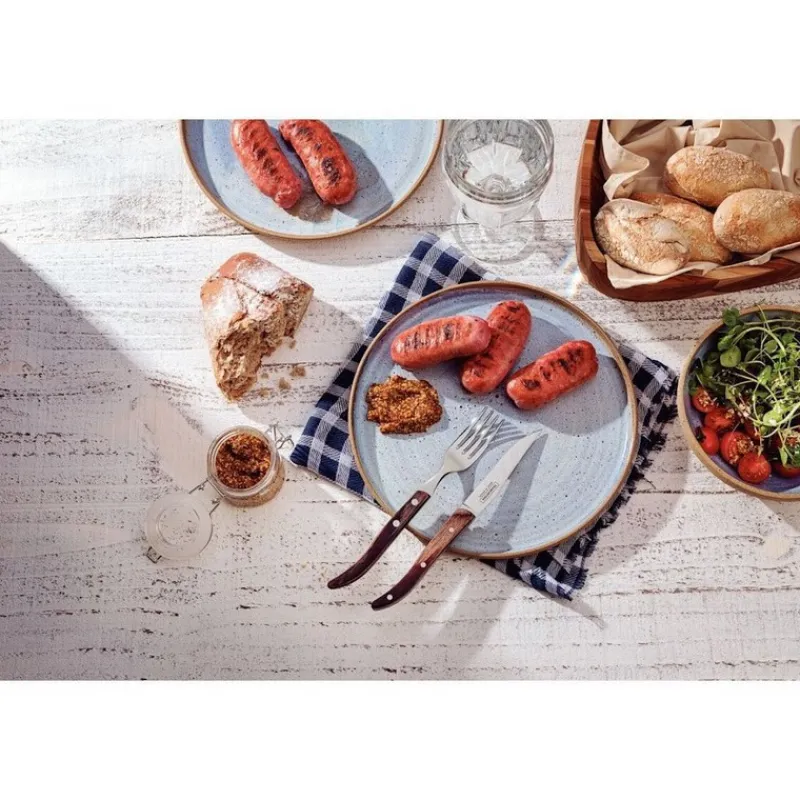 Dans la collection Churrasco de la marque brésilienne Tramontina, voici un couteau à steak au design particulièrement élégant ! Le couteau à lame lisse pleine soie et manche en Polywood.