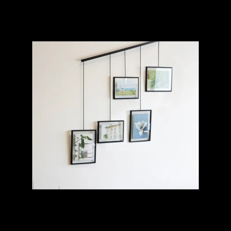 L’exposition murale Exhibit de Umbra est également parfaite pour ceux qui cherchent à limiter les trous dans leurs murs. Avec cette ensemble, vous n’avez besoin que de deux trous pour accrocher les 5 cadres !