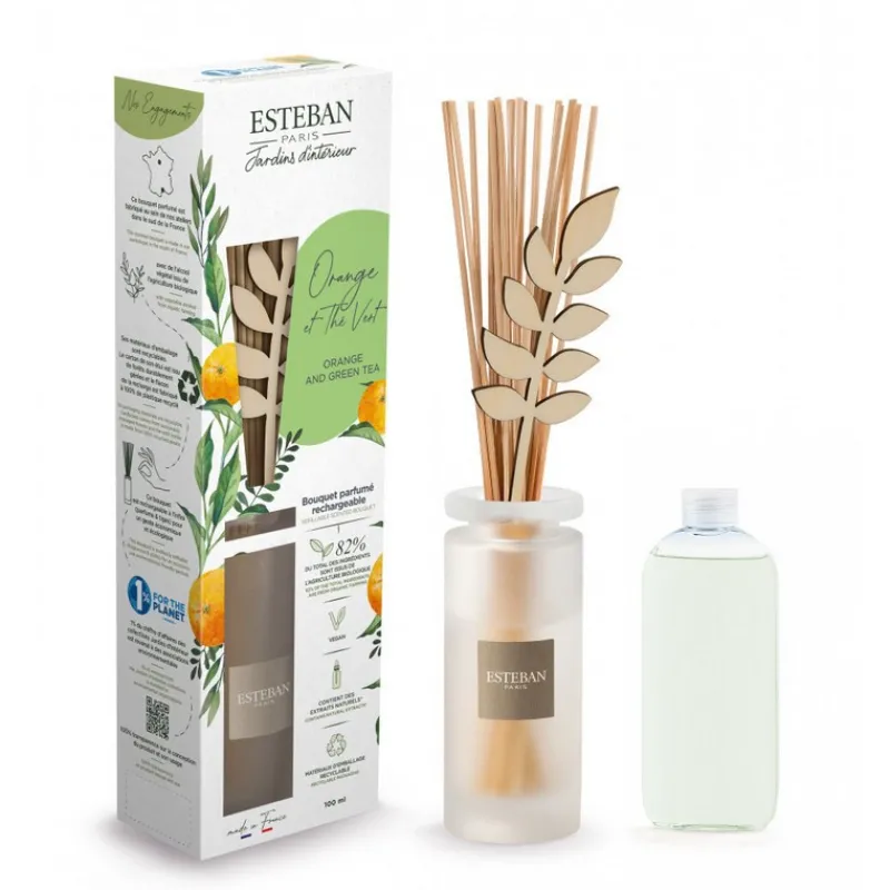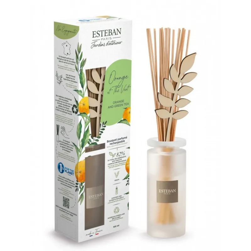 Sublimez votre intérieur d’un délicat parfum hespéridé et aromatique avec le bouquet parfumé Orange et Thé Vert de la maison Esteban. Une explosion d’agrumes où l’huile essentielle d’orange se mêle aux effluves de thé vert pour un éveil sensoriel.