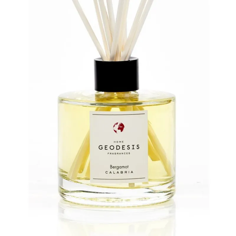 Plongez les tiges en rotin dans le flacon Geodesis et découvrez la senteur à la fois florale et hespéridée de la Bergamote.