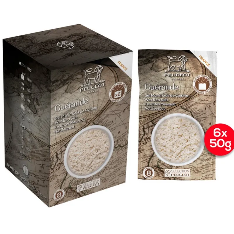 Ce sel humide gris de Guérande de 300G de Peugeot vous sera utile au quotidien, lors de vos préparations en cuisine.