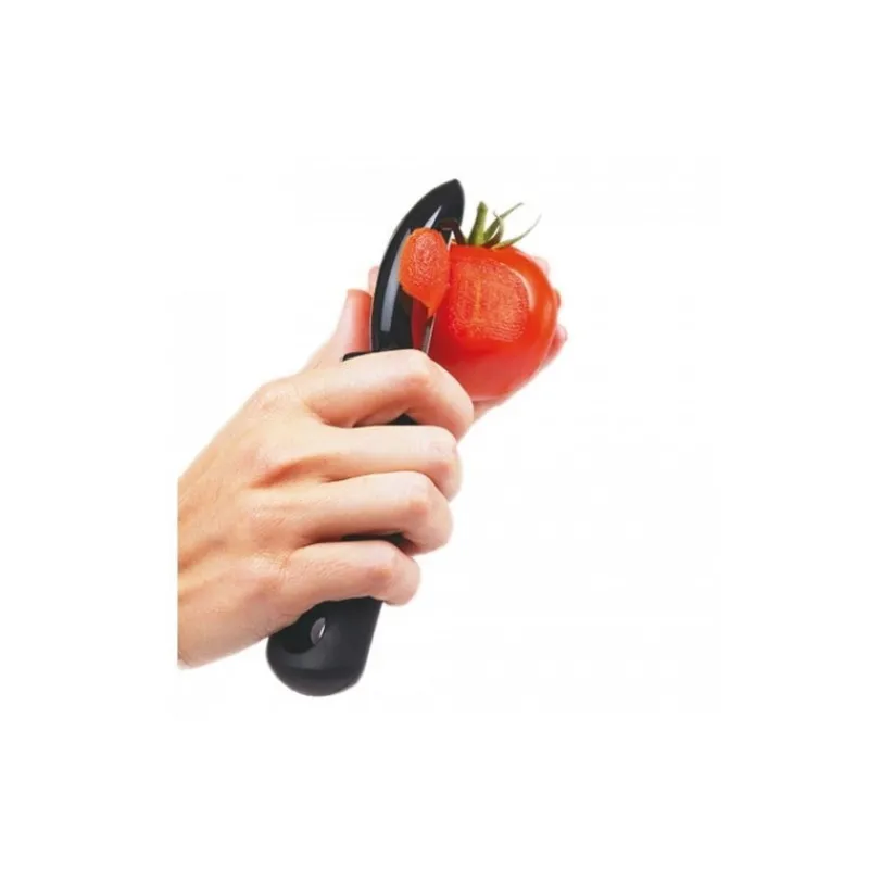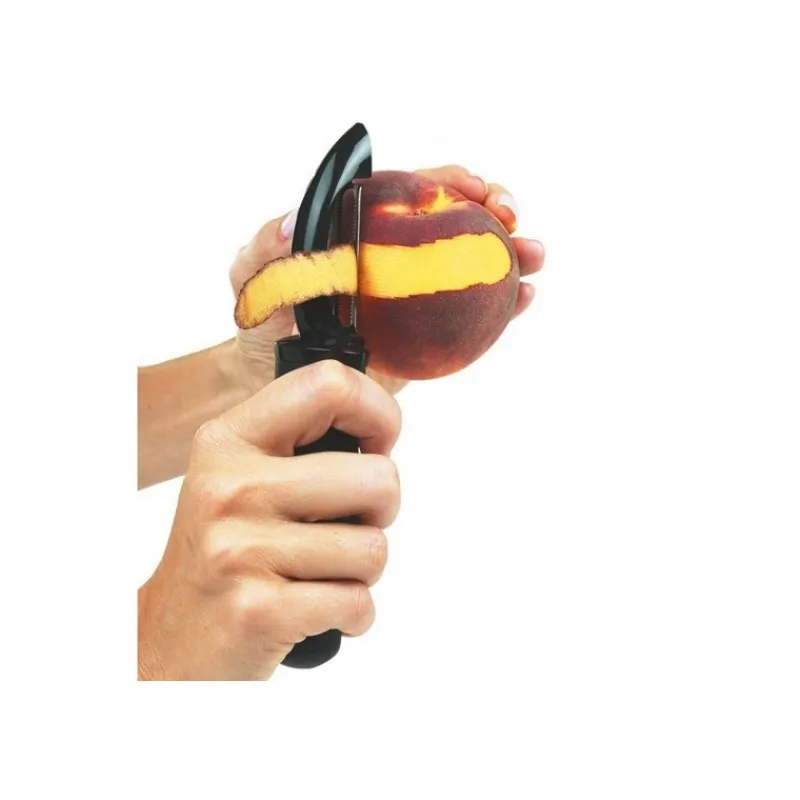 Cet éplucheur dentelé à la poignée ergonomique est parfait pour éplucher fruits et légumes à peaux fines.