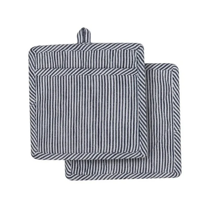 Conçues en coton et lin, les maniques de cuisine Lina Stripe Navy de Ladelle sont indispensables dans votre cuisine pour déplacer tous vos plats chauds !