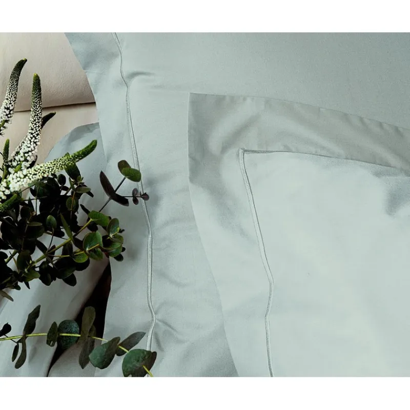 Pour un sommeil apaisé et réparateur, découvrez la taie d’oreiller Vexin en percale de coton de la maison française Anne de Solène.