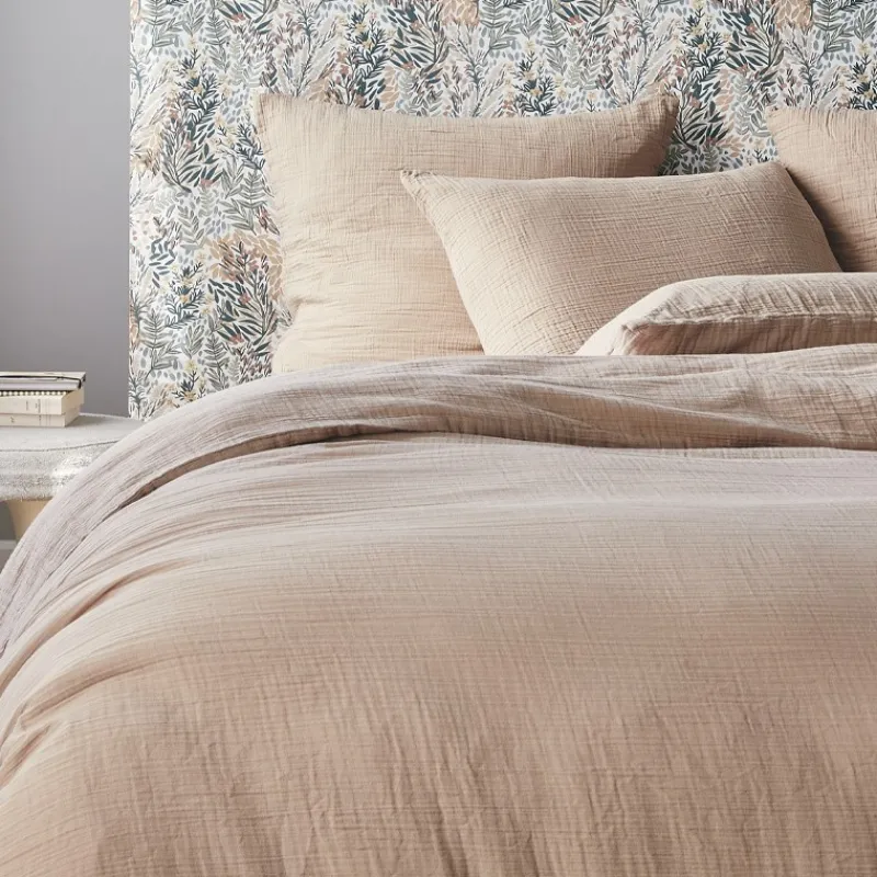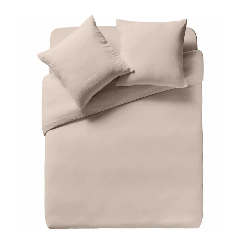 La housse de couette Tendresse Beige Naturel adopte un look décontracté et une texture délicatement gaufrée. Vous allez adorer cette gaze de coton aussi fraîche que réconfortante !