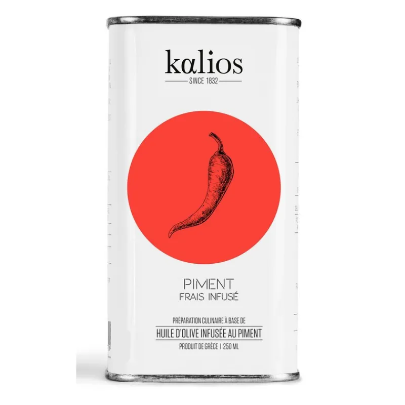 Cette Huile d’Olive infusée au Piment de Kalios, met en avant les arômes du piment frais infusé.