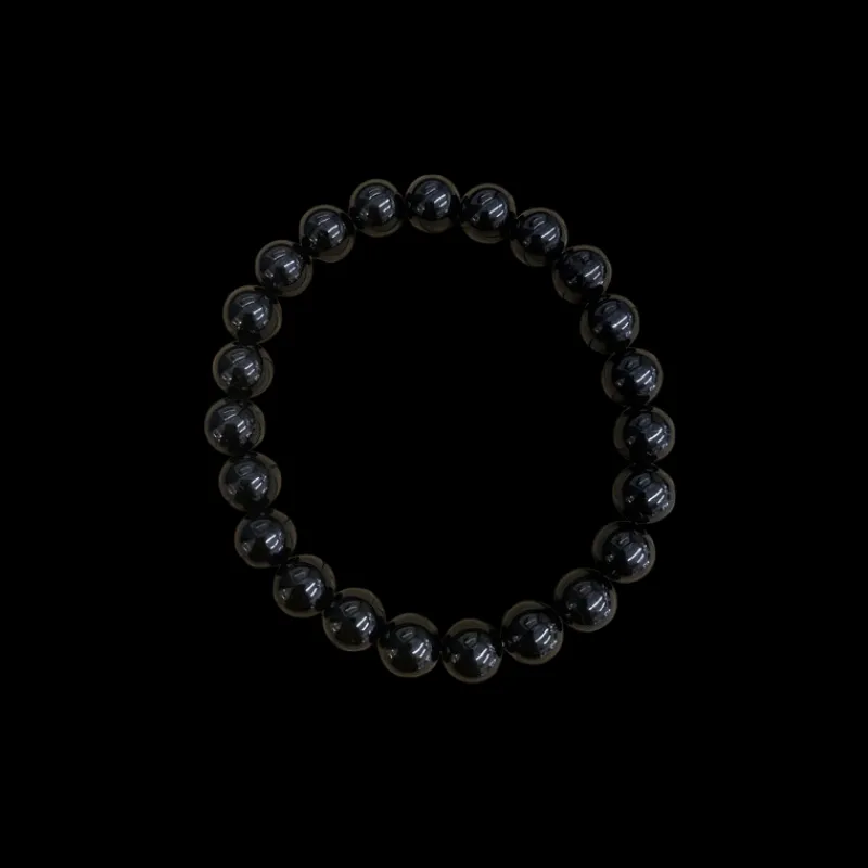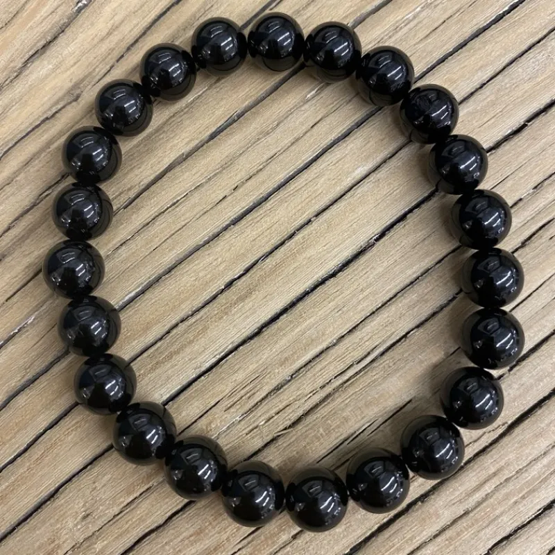 Ce très beau bracelet en tourmaline noir est monté sur fil élastique pour s’adapter à votre poignet.